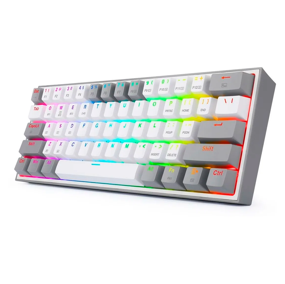Teclado Mecánico Gaming Redragon FIZZ PRO 60%, Inalámbrico, Gris/Blanco, Switch RED, USB TIPO-C, 2.4Ghz, Bluetooth- K616-RGB GW