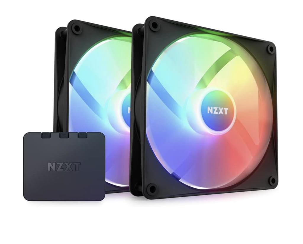 Ventilador NZXT F140 RGB Core Twin Pack – controlador RGB – 8 LED – Alta presión estática y flujo de aire – Software CAM – Negro