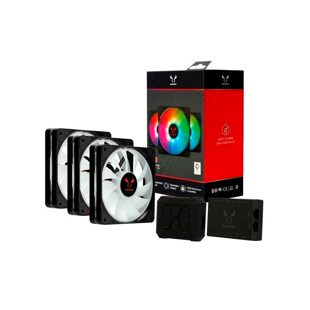Kit de Ventiladores Riotoro QUIET STORM RGB 3x120mm Addressable LED, ASUS/Gigabyte/MSI compatible