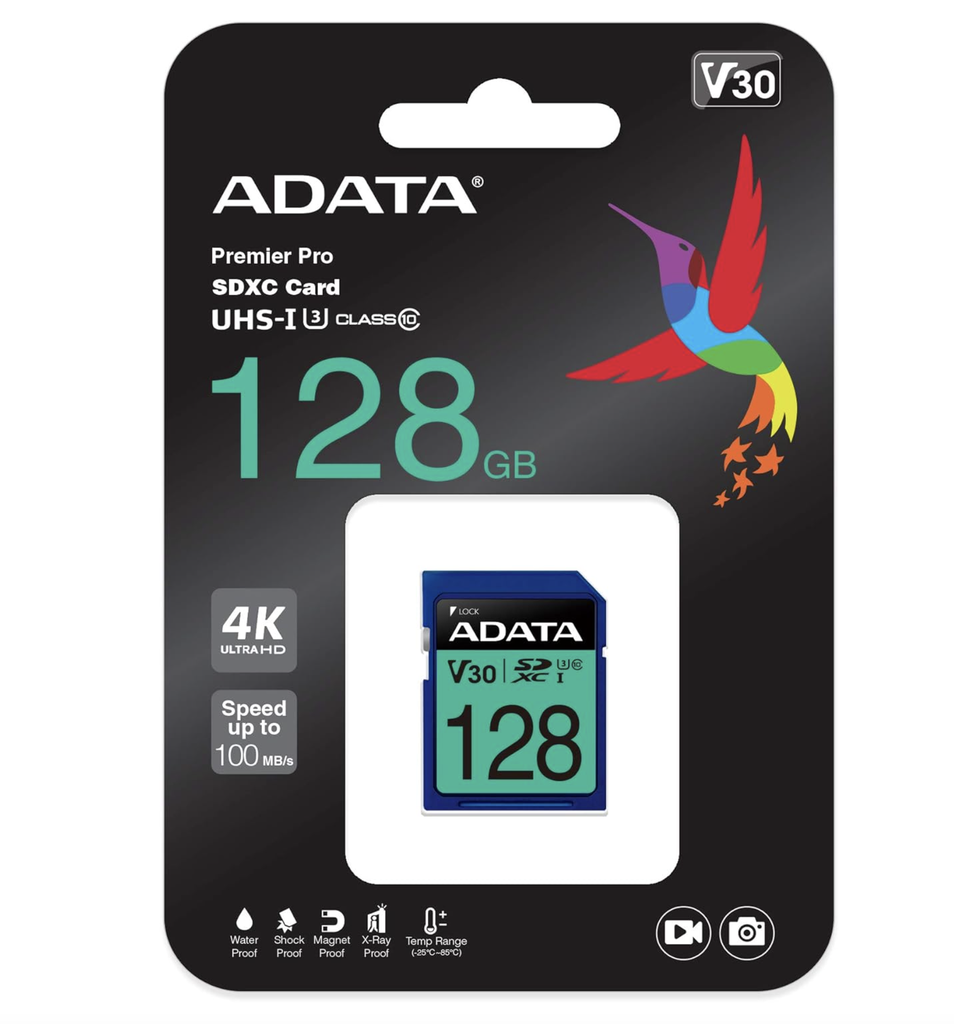 MEMORIA SD 128GB ADATA Premier Pro - Tarjeta de memoria SD V30S SDXC UHS-I U3 V30 Clase 10 Full HD y 4K UHD SD (ASDX128GUI3V30S-R)