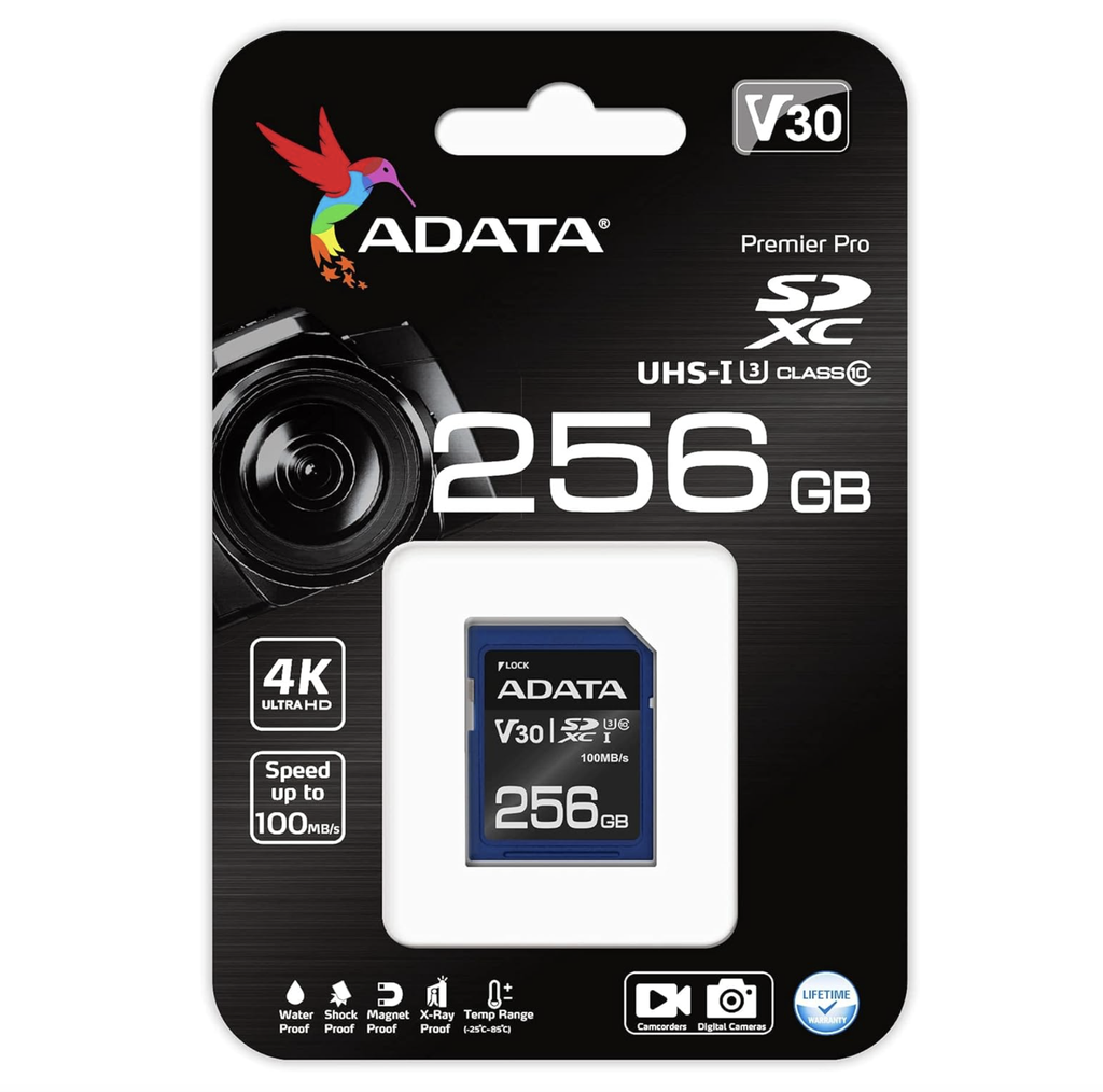 MEMORIA SD 256GB ADATA Premier Pro - Tarjeta de memoria SD V30S SDXC UHS-I U3 V30 Clase 10 Full HD y 4K UHD SDASDX256GUI3V30S-R