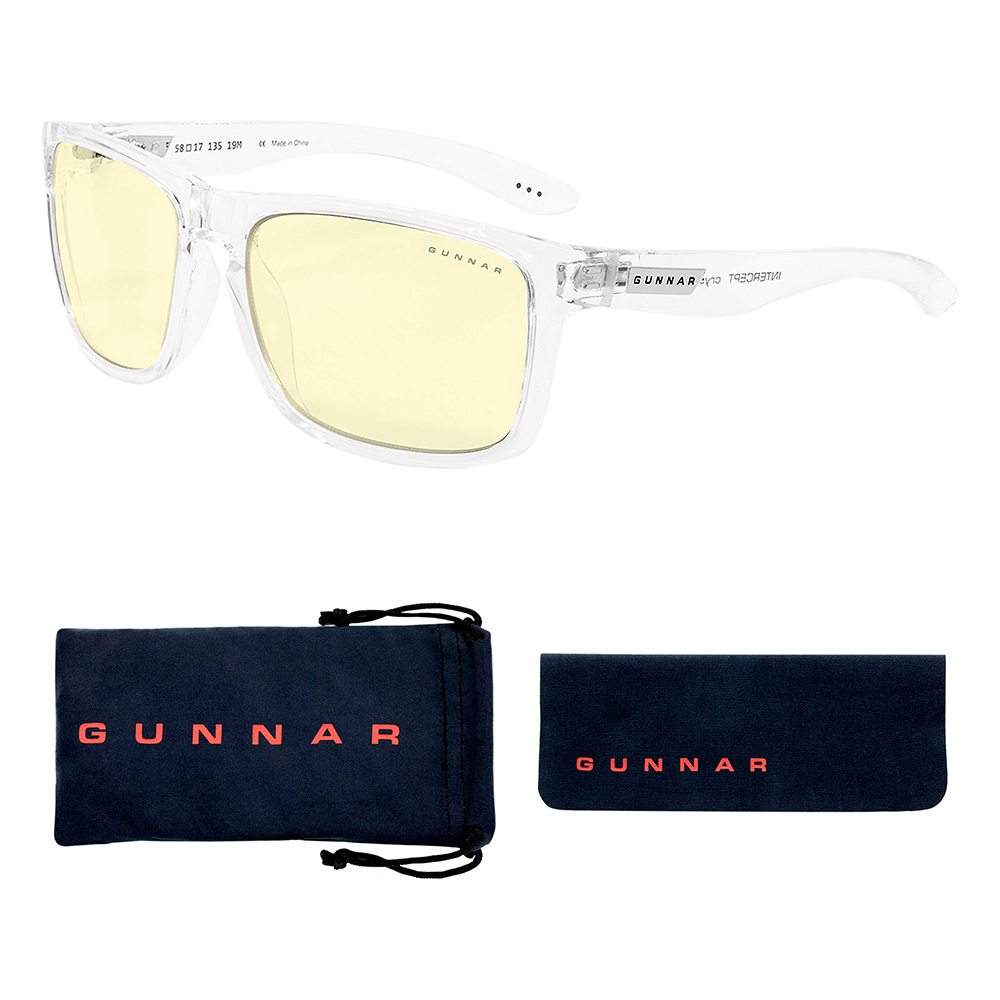 Gafas GUNNAR INTERCEPT Gaming Glasses (Crystal Frame) Color Lente Amber, Frame Transparente, Light weight, 100% UV Block - INT-07601