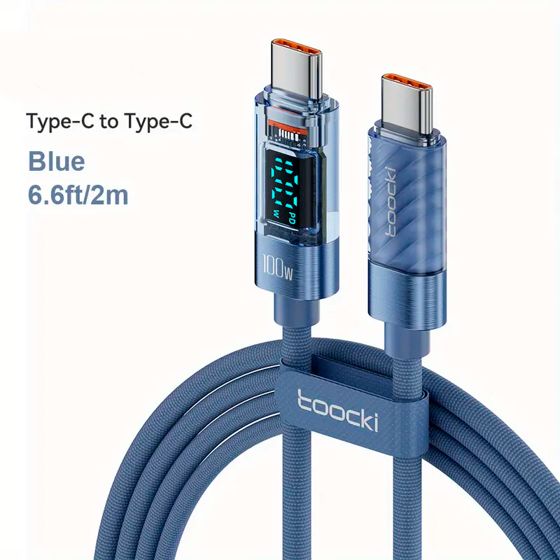 Cable de Carga TOOCKI Con Pantalla, USB-C A USB-C TOOCKI 100W - PD100/ TXCTT1-Blue