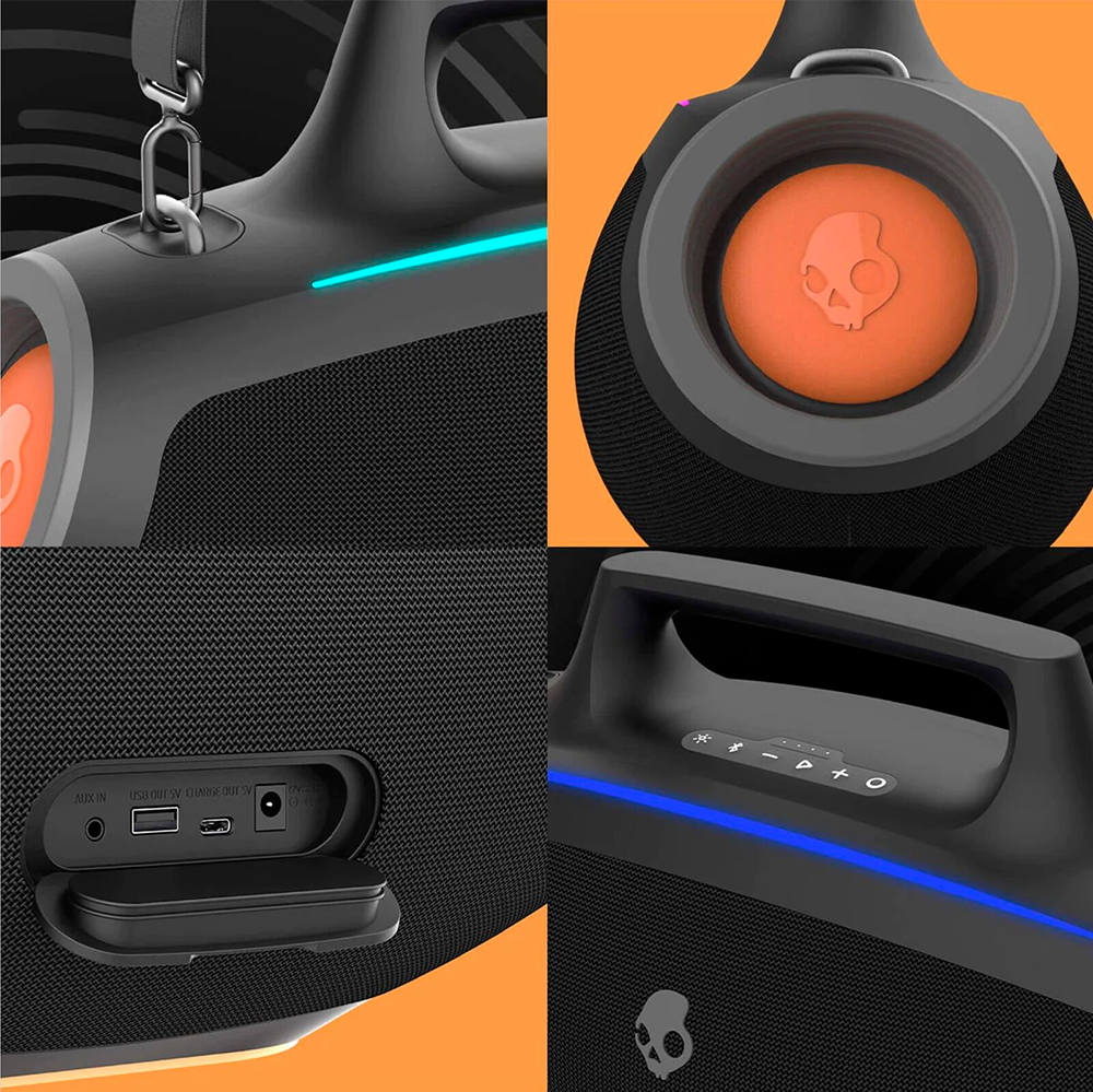 Bocinas Skullcandy BARREL Negra Bluetooth 5.3, IPX5 Resistente al agua, 12Hrs, Barra LED, USB-C y USB-A, Multilink - 2SKSK1849B0L2