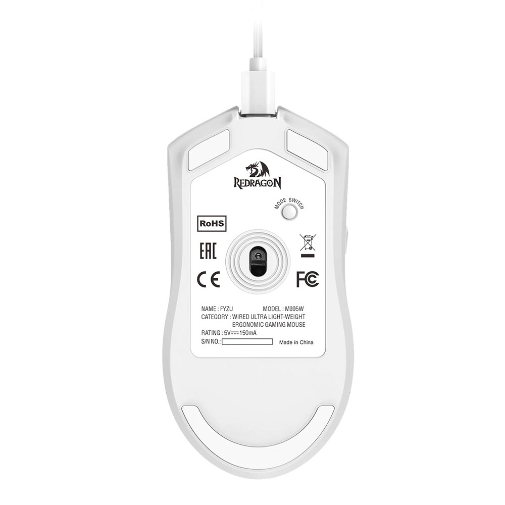 Mouse Redragon FYZU Blanco, M995W, 50-26000 Dpi, 6 botones, 51grms, SENSOR PAW2395, USB