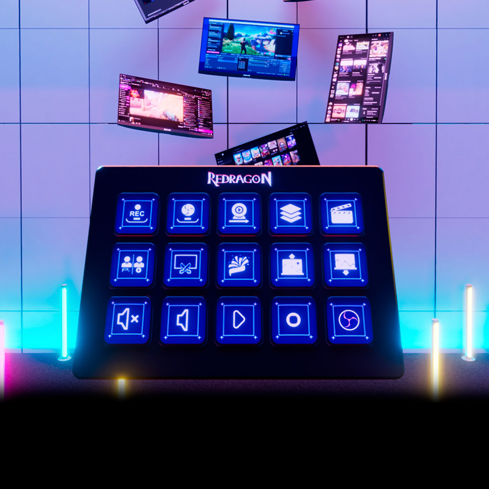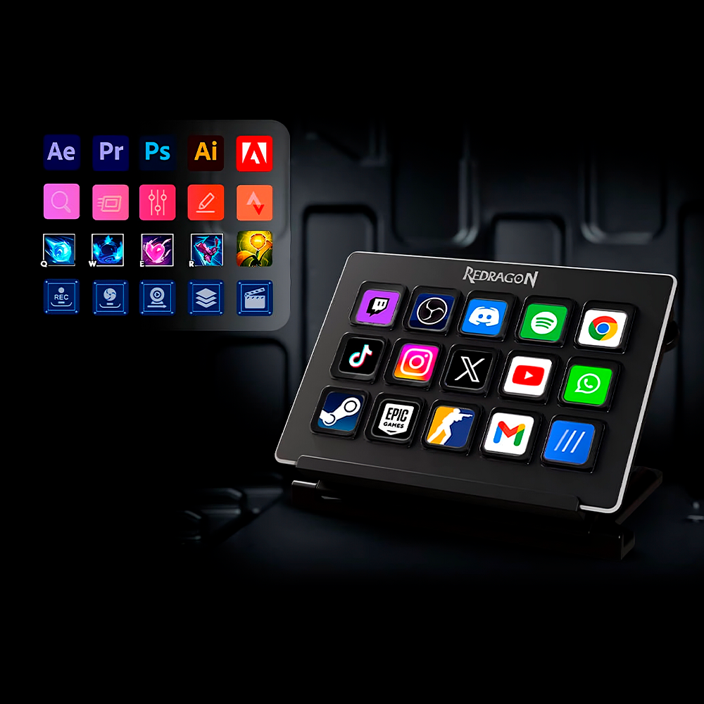 StreamCraft Redragon, Deck Controlador 15 Botones, LCD, USB, SS-550