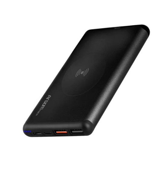 Power bank ARGOM, backup 12,000MAH WIRELESS, USB output DC 2.1A, carga rapida 15W, ARG-PB-1156BK