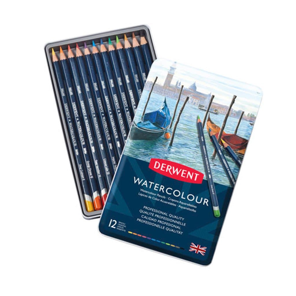 Caja Metal Lápices de Colores Derwent Watercolour Acuareables 12 unidades