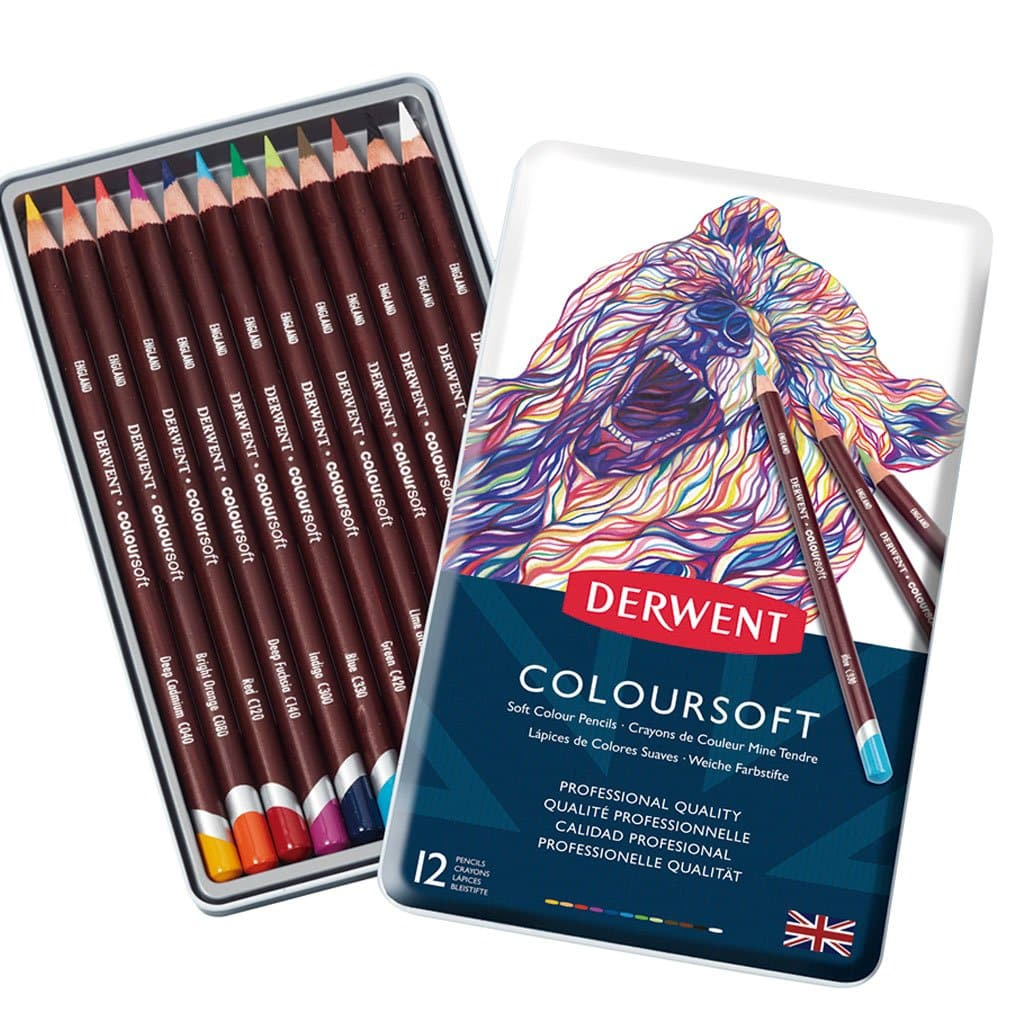 Caja Metal Lápices de Colores Derwent Coloursoft base cera 24 unidades